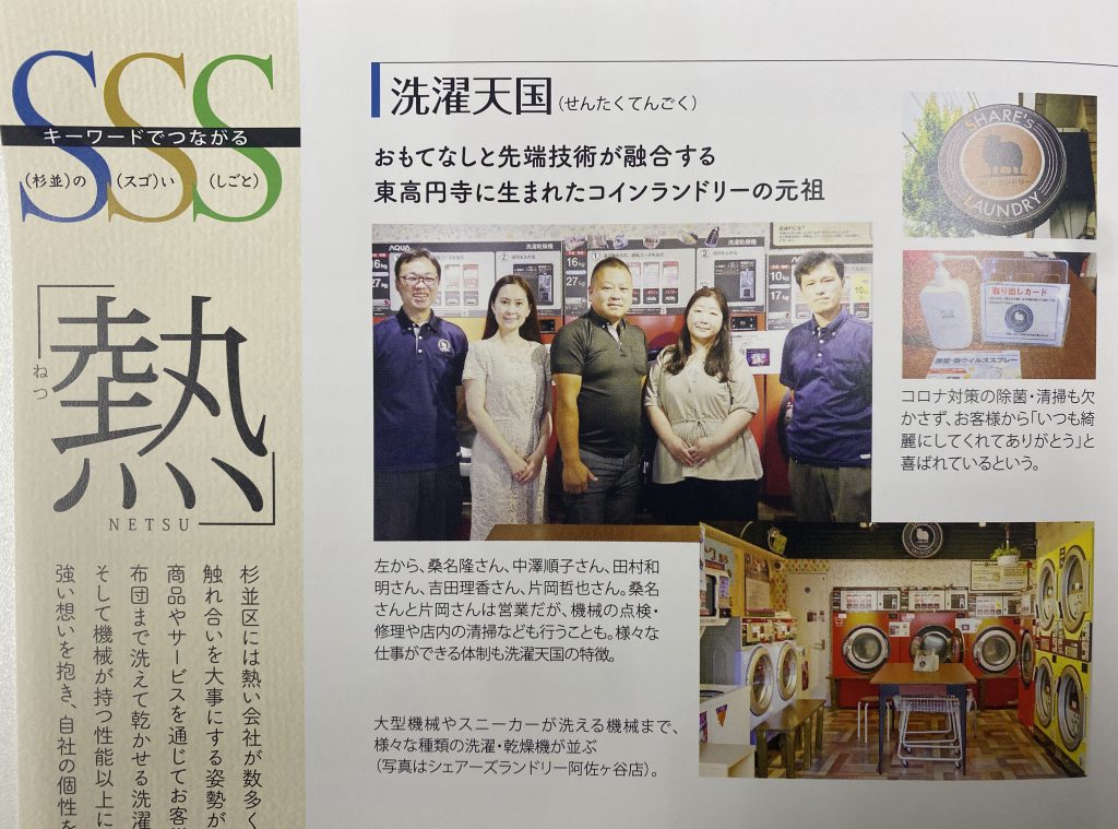 杉並区産業振興センター・杉並産業協会が発行する『すぎなみ産』が届き、SSS(すぎなみ・すごい・しごと)に洗濯天国が杉並区内の企業として紹介されました。この冊子には数年前にも取り上げられましたが、今回は『おもてなしと最先端…続きを読む