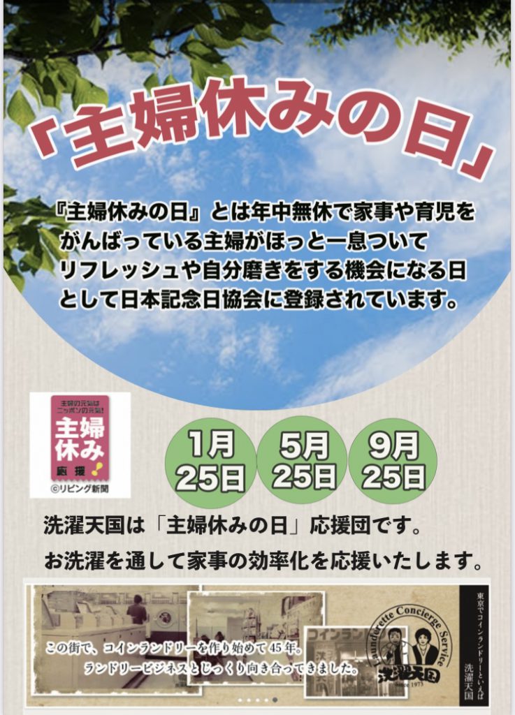 洗濯天国は『主婦休みの日』応援団です